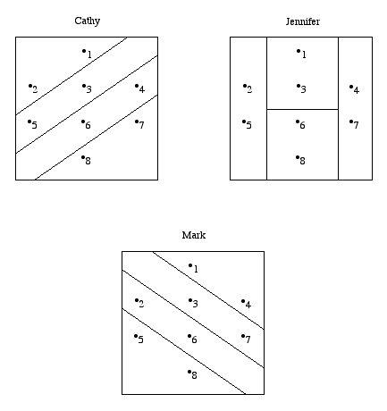 Lets next consider k = 3. Again at the first ring, each of the messy diners i1, i2, and i3 knows the status of the other diners, but not her own. The situation is apparently unchanged after the second ring. But on the third ring, i1 realizes that she is messy. For if i2 and i3 were the only messy ones, then they would have discovered this after the second ring by the argument of the previous paragraph. Since i1 can see that all of the diners other than i2 and i3 are clean, she concludes that she must be messy. i2 and i3 draw similar conclusions at the third ring, and all clean their faces at that time.
