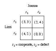 Schellings department store problem is an example of a pure coordination problem, that is, an interaction problem in which the interests of the agents coincide perfectly. Schelling (1960) and Lewis (1969), who were the first to make explicit the role common knowledge plays in social coordination, were also among the first to argue that coordination problems can be modeled using the analytic vocabulary of game theory. A very simple example of such a coordination problem is given in the next figure: