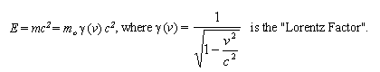 (I) In the frame of reference in which a body is at rest, its energy (in this case called the rest-energy) is equal to the product of its rest-mass mo and the speed of light squared. This is because in this case v = 0, so the Lorentz factor is one.(II) In a frame of reference in which a body moves with velocity v, the energy of the body is equal to the product of its rest-mass, the speed of light squared, and the Lorentz factor.