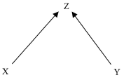 The Causal Markov Condition (CMC) asserts that MC holds of a population when the directed graph and probability distribution are given these interpretations. CMC does not hold in general, but only when certain further conditions are satisfied. For instance, V must include all common causes of variables that are included in V. Suppose, for example, that V = {X, Y}, that neither variable is a cause of the other, and that Z is a common cause of X and Y (the true causal structure is shown in Figure 3 below). The correct causal graph on V will include no arrows, since neither X nor Y cause the other. But X and Y will be probabilistically correlated, because of the underlying common cause. This is a violation of CMC. Since the correct causal graph on {X, Y} has no arrows, X has no parents or descendents; thus CMC entails that P(X | Y) = P(X). This equality is false, since X and Y are in fact correlated. CMC can also fail for certain types of heterogeneous populations composed of subpopulations with differenct causal structures. And CMC will fail for certain quantum systems. One area of controversy concerns the extent to which actual populations satisfy CMC with respect to the sorts of variable sets that are typically employed in empirical investigations. For purposes of further discussion, we will assume that CMC holds.