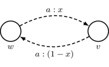 Also, for convenience, we adopt the following rule for simplifying drawings: for each agent a, each non-reflexive arrow that is labeled by a and the number x and is drawn in one direction gives rise to an implicit arrow that is labeled by a and the number \(1-x\) and is drawn in the opposite direction.